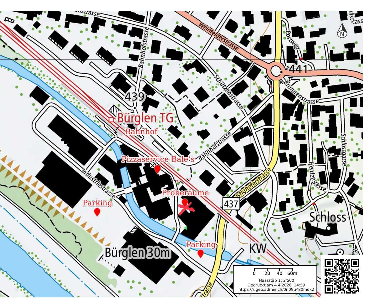 Das Areal liegt unmittelbar am Bahnhof Bürglen und es sind genug Parkplätze vorhanden.